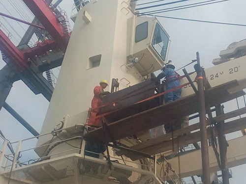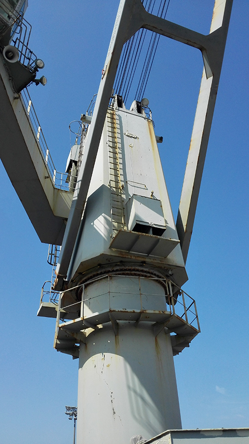裝卸貨碼頭或船廠系統檢驗、評估, 旋轉軸承螺絲預緊, 吊重試驗。 CRNAE AND SYSTEM PREINSPECTION ON PIER / SHIPYARD. TIGHTNESS OF THE BOLTS FOR SLEWING BEARINGS, LOADING TEST.